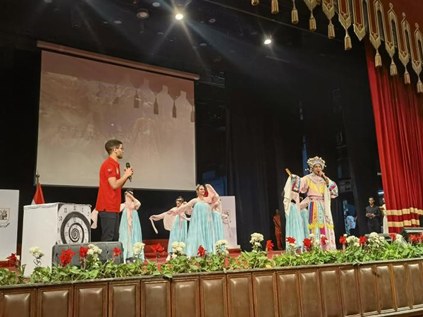 此次比賽分成中學(xué)本土教師、高校本土教師與高校中國(guó)教師三個(gè)賽道,來(lái)自二十三所高校三十余名教師參賽。典禮上,來(lái)自開(kāi)羅大學(xué)、蘇伊士運(yùn)河大學(xué)等學(xué)校的學(xué)生們表演了小品、詩(shī)朗誦和武術(shù)等。同學(xué)們的精神面貌贏得全場(chǎng)觀眾熱烈的掌聲。