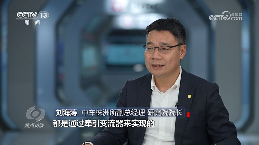 中車(chē)株洲所副總經(jīng)理、研究院院長(zhǎng)劉海濤:“在高鐵車(chē)窗上擺一枚硬幣,這枚硬幣在高鐵300公里時(shí)速運(yùn)行工況下依然非常平穩(wěn)。過(guò)程中的加減速以及恒速控制,都是通過(guò)牽引變流器實(shí)現(xiàn)的?!?