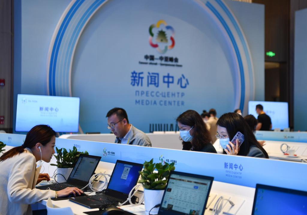 中國(guó)—中亞峰會(huì)18日至19日在西安舉行。在峰會(huì)新聞中心,來自不同國(guó)家的新聞?dòng)浾呔o張而有序地忙碌著。