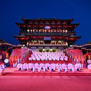 2023年1月24日,西安大唐芙蓉園內(nèi)上演的舞臺劇《鼓》。新華社記者 劉瀟 攝