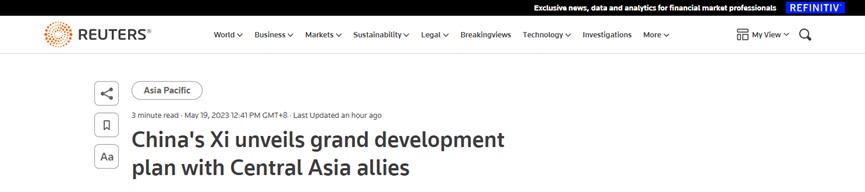 英國路透社網(wǎng)站評論指出,中國國家主席習(xí)近平19日就中國同中亞五國合作交往提出建議,從深化互聯(lián)互通到拓展經(jīng)貿(mào)關(guān)系,公布了宏偉的發(fā)展計(jì)劃,全面助力中亞國家提升發(fā)展能力。