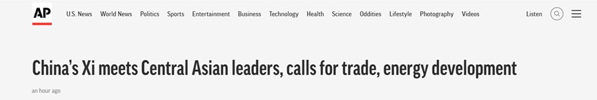 美聯(lián)社網(wǎng)站5月19日報道稱,在共建“一帶一路”倡議框架下,中國與中亞國家間合作不斷深化。中國是世界第二大經(jīng)濟(jì)體,中亞國家將中國視為重要的市場和投資來源。此次中國-中亞峰會彰顯中國在中亞地區(qū)日益增長的影響力。