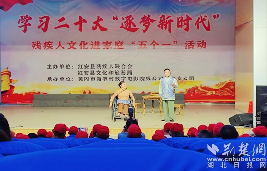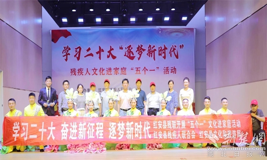 荊楚網(wǎng)(湖北日?qǐng)?bào)網(wǎng))訊(通訊員程應(yīng)良)5月21日,紅安縣殘疾人聯(lián)合會(huì)、紅安縣文化和旅游局聯(lián)合舉辦“學(xué)習(xí)二十大 逐夢(mèng)新時(shí)代”為主題的第二期殘疾人文化進(jìn)家庭“五個(gè)一”活動(dòng),幫助殘疾人朋友游一次園、參觀一次展覽、讀一本書、參加一次文化活動(dòng)、看一場(chǎng)電影。