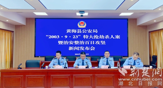 黃梅濯港“2003·9·23”特大搶劫殺人案新聞發(fā)布會現(xiàn)場。通訊員 供圖