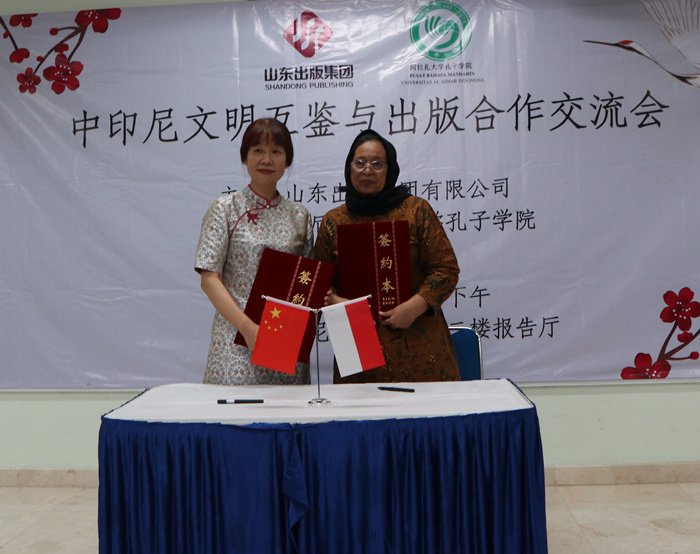 交流會上,山東出版集團(tuán)還同阿拉扎孔院就建立尼山書屋可能性進(jìn)行了交流,希望為印尼的文化文學(xué)愛好者提供更多的閱讀機(jī)會和資源。山東教育出版社與印尼火炬基金會出版社在會后還舉行了簽署戰(zhàn)略合作協(xié)議暨《澤及草木,恩至水土——儒家生態(tài)文化》(印尼文版)版權(quán)輸出簽約儀式;山東文藝出版社與印尼火炬基金會出版社舉行簽署戰(zhàn)略合作協(xié)議暨《中國兒童百年發(fā)展研究(1921-2021)》(印尼文版)版權(quán)輸出簽約儀式。