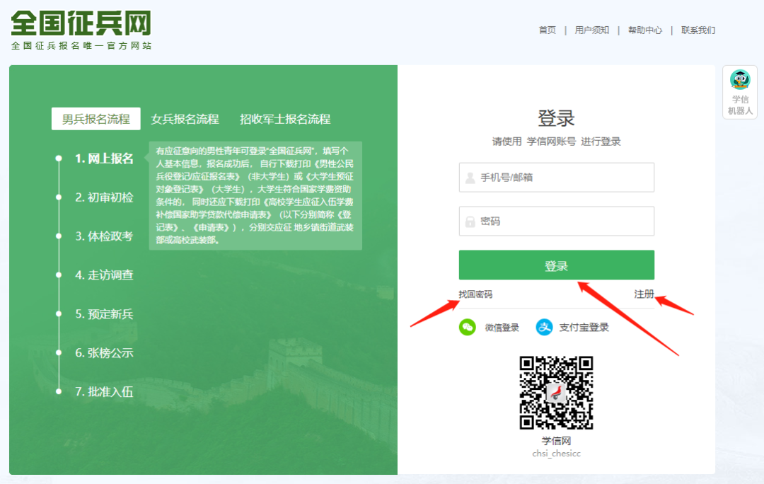 進入全國征兵網(wǎng),選擇相應的報名入口,點擊應征報名,將會跳轉到登錄界面。
