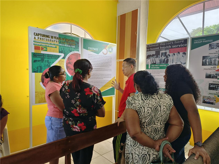 作為中國(guó)國(guó)粹之一,中醫(yī)診療廣受當(dāng)?shù)鼐用駳g迎。此外,醫(yī)療隊(duì)還在義診現(xiàn)場(chǎng)舉辦了中國(guó)醫(yī)療隊(duì)援圭30周年圖片展活動(dòng),吸引了大量當(dāng)?shù)孛癖婑v足觀看。