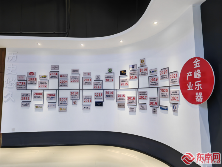 漳州金峰眾創(chuàng)園創(chuàng)業(yè)樓的一樓展廳里漳州樂(lè)器的發(fā)展歷程。東南網(wǎng)記者 林永清 攝