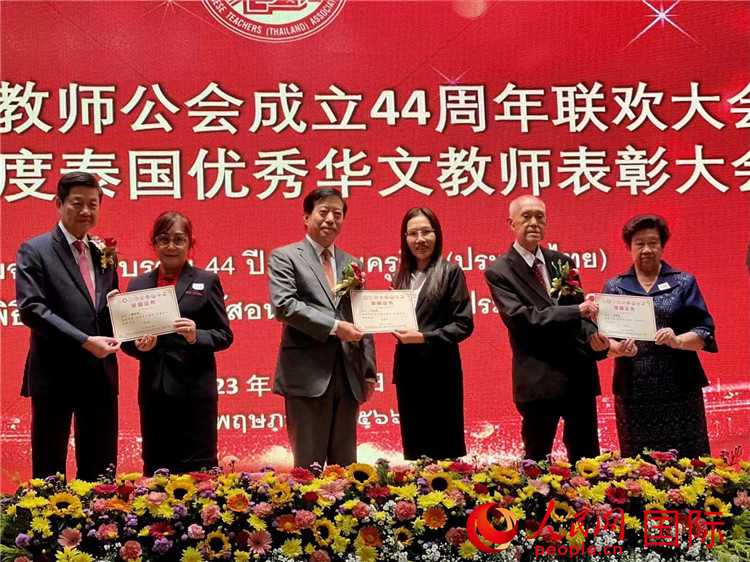 人民網(wǎng)曼谷5月29日電 (記者孫廣勇)5月28日,“泰國華文教師公會成立44周年聯(lián)歡大會暨2023年度泰國優(yōu)秀華文教師表彰大會”在泰國中華總商會隆重舉行。中國駐泰王國大使韓志強、泰國中華總商會主席林楚欽、泰國華文教師公會主席羅宗正等嘉賓與來自泰國各地的僑屆代表、華文學(xué)校校董、校長、華文老師和眾多華教熱心人士約600人共同參盛,是泰國自新冠疫情以來召開的規(guī)模最大的全國性中文教育盛會。