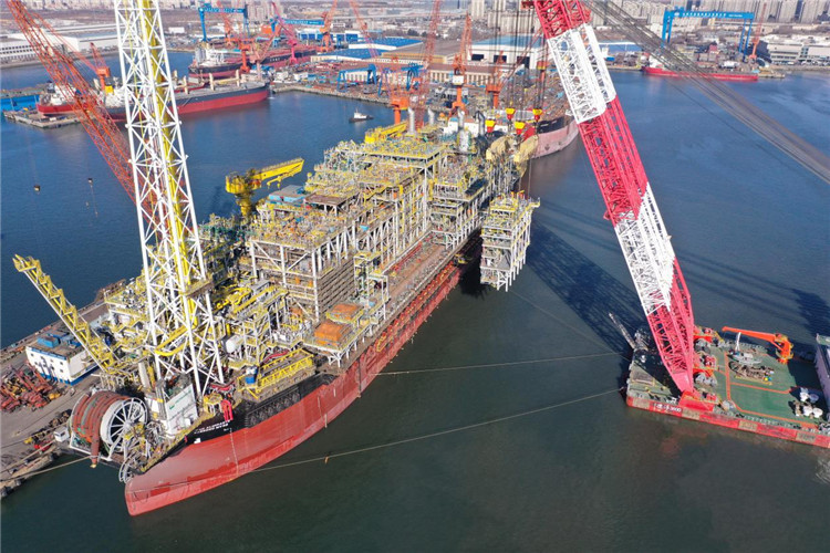 | 當(dāng)?shù)貢r間5月31日,由中國海油參建并持有權(quán)益的全球最大深水油田——巴西布濟(jì)烏斯五期項目順利投產(chǎn)。圖為有著“海上原油加工廠”之稱的海洋油氣開發(fā)的主要生產(chǎn)裝置——浮式生產(chǎn)儲卸油裝置(FPSO)上部模塊吊裝正在進(jìn)行。中海石油巴西有限公司與巴西國家石油公司供圖 |