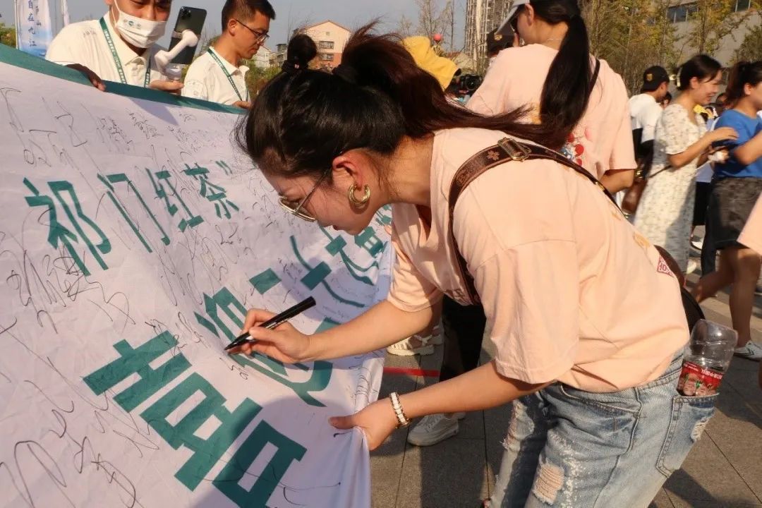沿線群眾踴躍在萬里茶道申遺橫幅上簽名