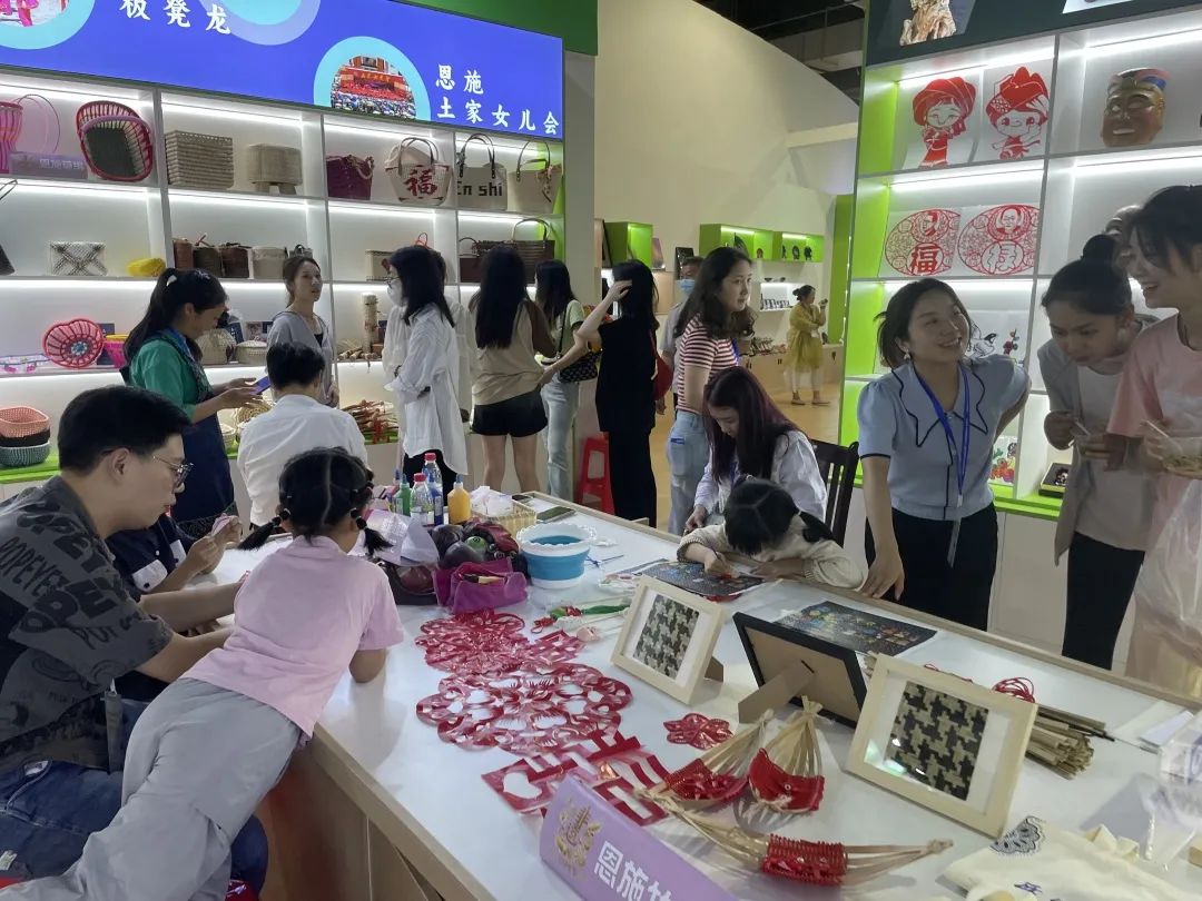 “非遺集市”展區(qū),恩施市主題館展館內(nèi),項(xiàng)目多彩、展品豐富。恩施木雕、恩施草編、恩施剪紙、恩施竹編、恩施儺面具制作技藝、油茶湯制作技藝、漆器髹飾技藝、恩施玉露制作技藝、王氏丸劑傳統(tǒng)制作技藝、竹馬、恩施地鴿子、恩施莊氏正骨法等十二類非遺項(xiàng)目以及非遺文創(chuàng)打花鋪參加了本次活動(dòng)的展覽展示展銷,同時(shí)還進(jìn)行了恩施市特色文藝節(jié)目展演,充分展示了近年來(lái)恩施市非遺保護(hù)及傳承工作的顯著成果。