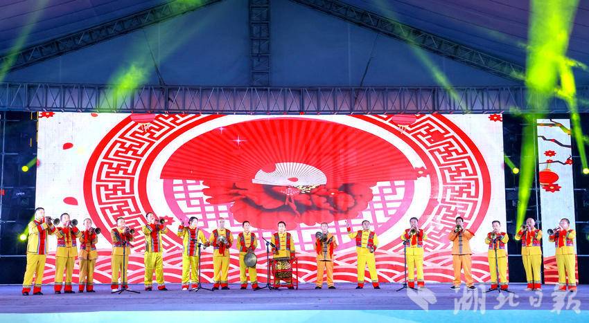 由龍趕湖燈戲文化藝術(shù)學(xué)校表演的吹打樂(lè)《龍王鬧親》由恩施燈戲傳承人改編而成,曲目歡快、催人奮進(jìn),深受廣大觀眾的喜愛(ài),表達(dá)了有朋自遠(yuǎn)方來(lái),淳樸好客的恩施土家人用歡快又熱情的音樂(lè)和號(hào)子的形式歡迎遠(yuǎn)道而來(lái)的客人,充分展現(xiàn)恩施土家人的豁達(dá)和熱情。