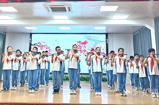 舞臺(tái)上,來(lái)自東門(mén)學(xué)校的孩子們給叔叔阿姨們帶來(lái)了情景舞蹈《開(kāi)學(xué)第一課》、小提琴演奏《我們多么幸?!贰⒌炎友葑唷赌夏酁?瀏陽(yáng)河 》、舞蹈《大海寫(xiě)生》等六個(gè)節(jié)目,歡快的舞蹈和悠揚(yáng)的笛聲讓現(xiàn)場(chǎng)充滿了歡聲笑語(yǔ)。