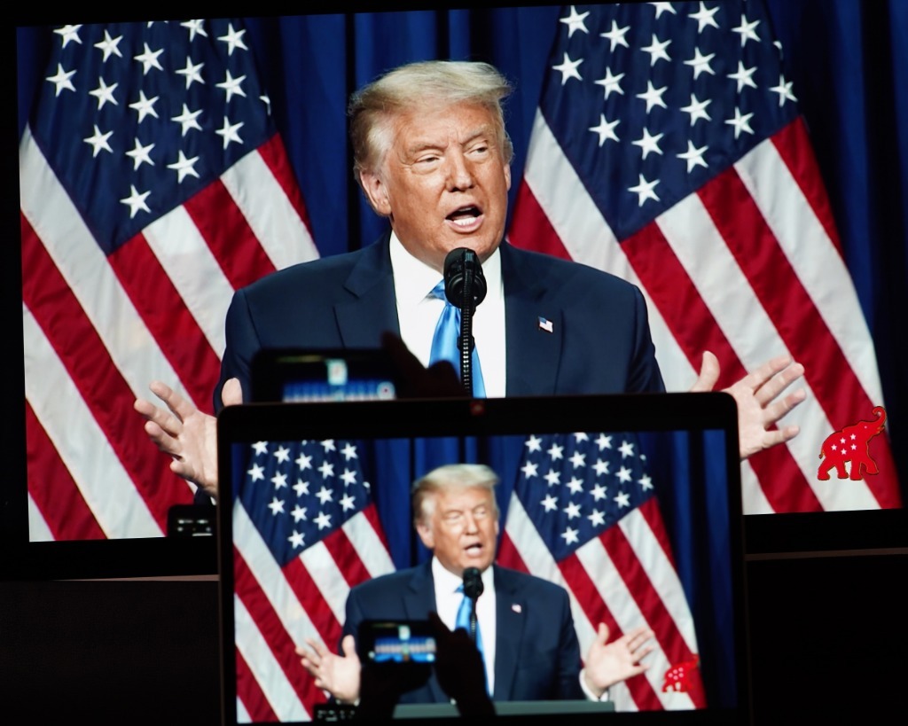 2020年8月24日拍攝的視頻畫面顯示,時(shí)任美國總統(tǒng)特朗普在北卡羅來納州夏洛特市舉行的美國共和黨全國代表大會(huì)上講話。新華社記者劉杰攝