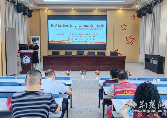 荊楚網(wǎng)(湖北日?qǐng)?bào)網(wǎng))訊(通訊員 丁元中)6月14日,鄂城區(qū)碧石渡鎮(zhèn)紀(jì)委、鎮(zhèn)財(cái)政所、中心學(xué)校在碧石渡鎮(zhèn)李邊小學(xué)報(bào)告廳聯(lián)合舉辦“傳承清廉好家風(fēng) 弘揚(yáng)清廉主旋律”家庭家教家風(fēng)宣講活動(dòng),碧石渡鎮(zhèn)紀(jì)委、鎮(zhèn)財(cái)政所、中小學(xué)教師代表共計(jì)80余人參加了本次活動(dòng)。