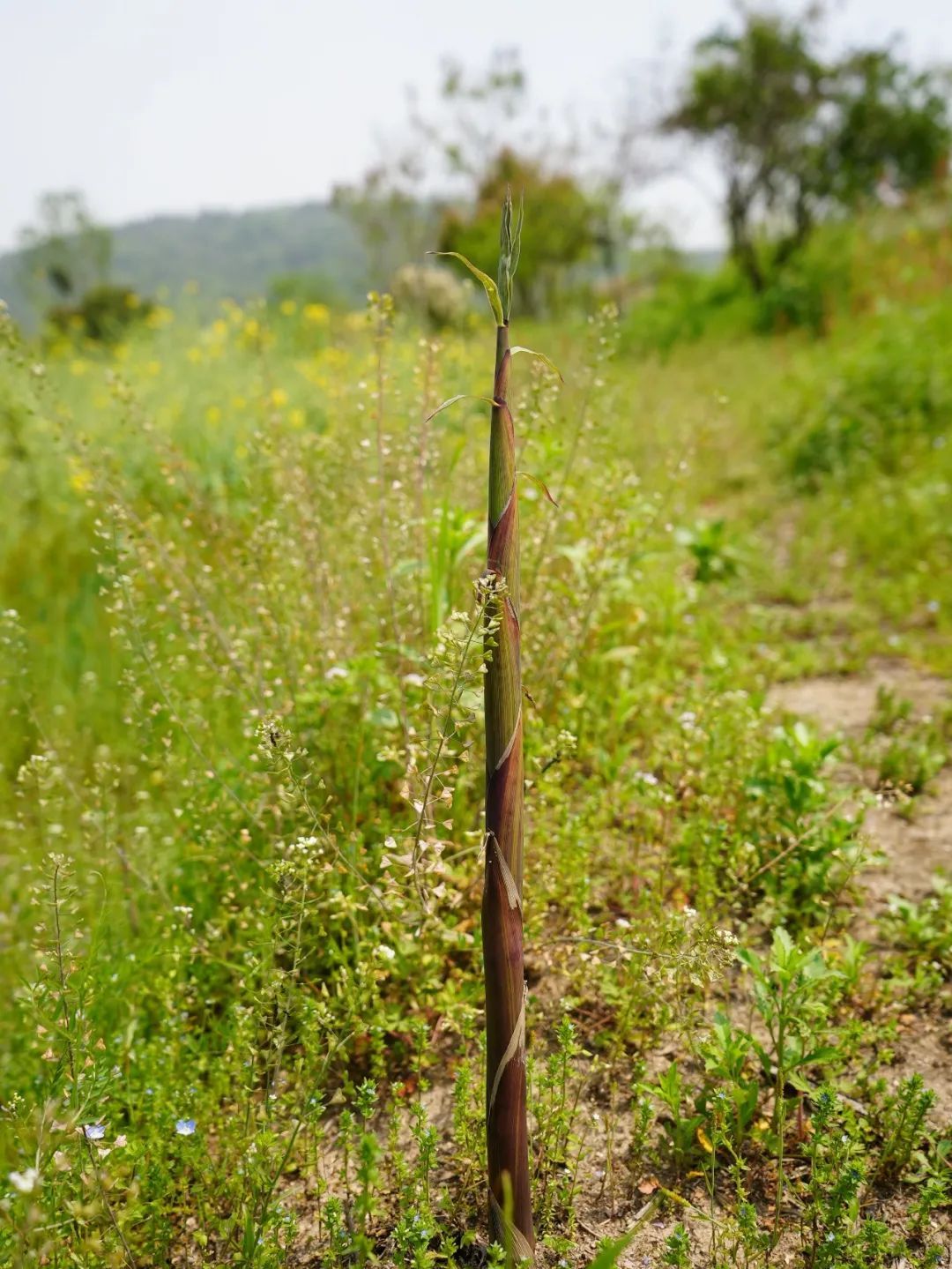 從甘蔗苗到粗壯的紅甘蔗