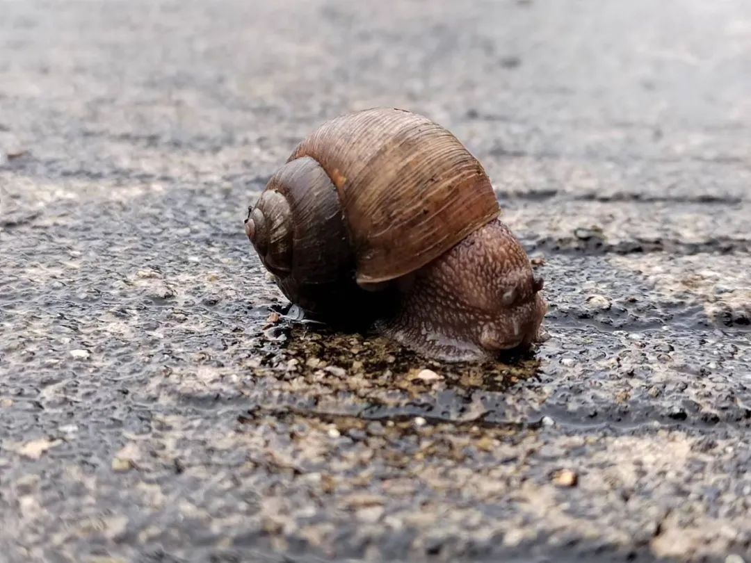 蝸牛背著剛洗過的軀殼緩行