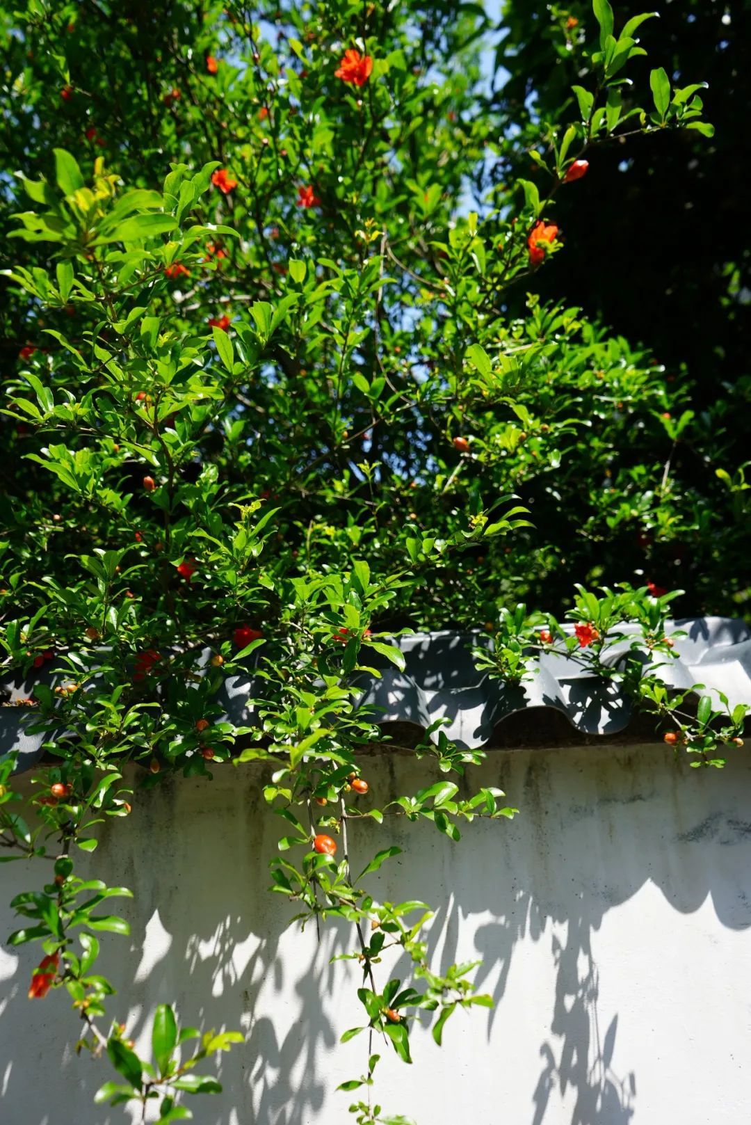 石榴花從院墻內(nèi)探出頭來
