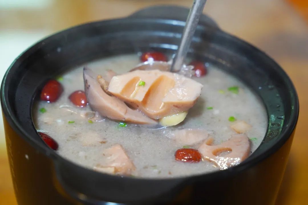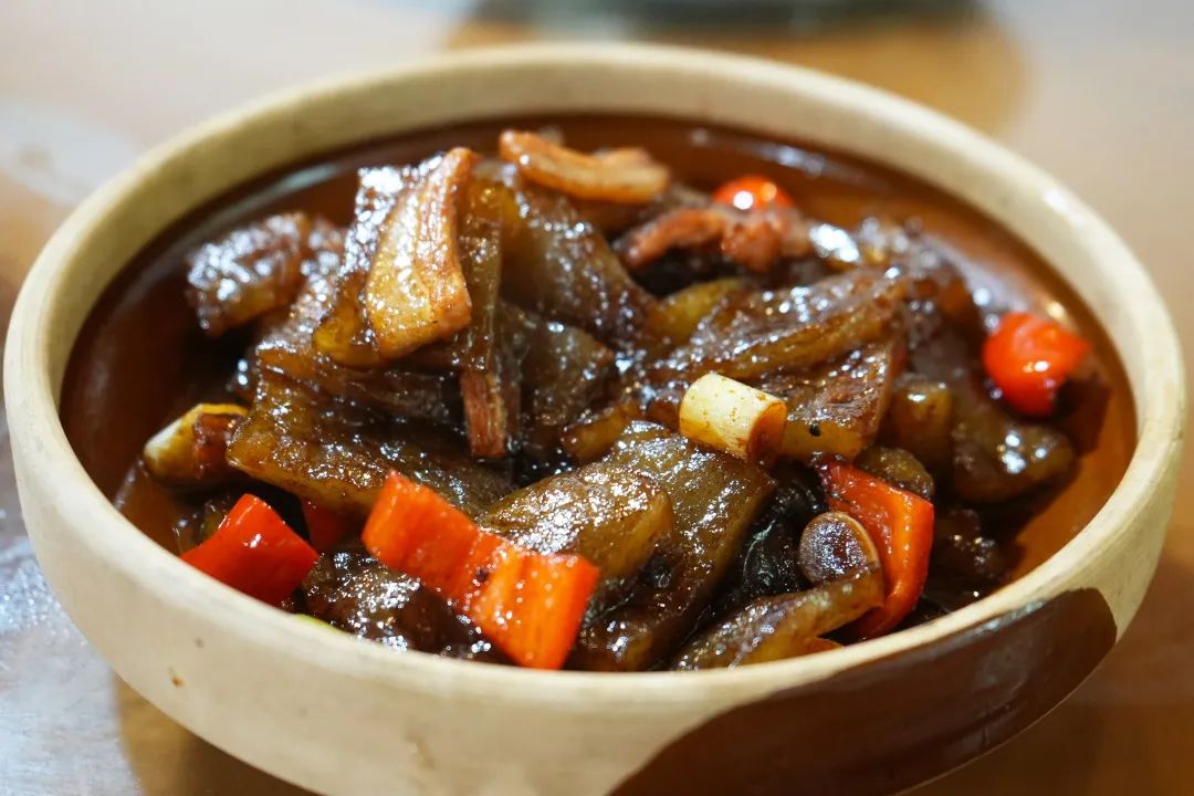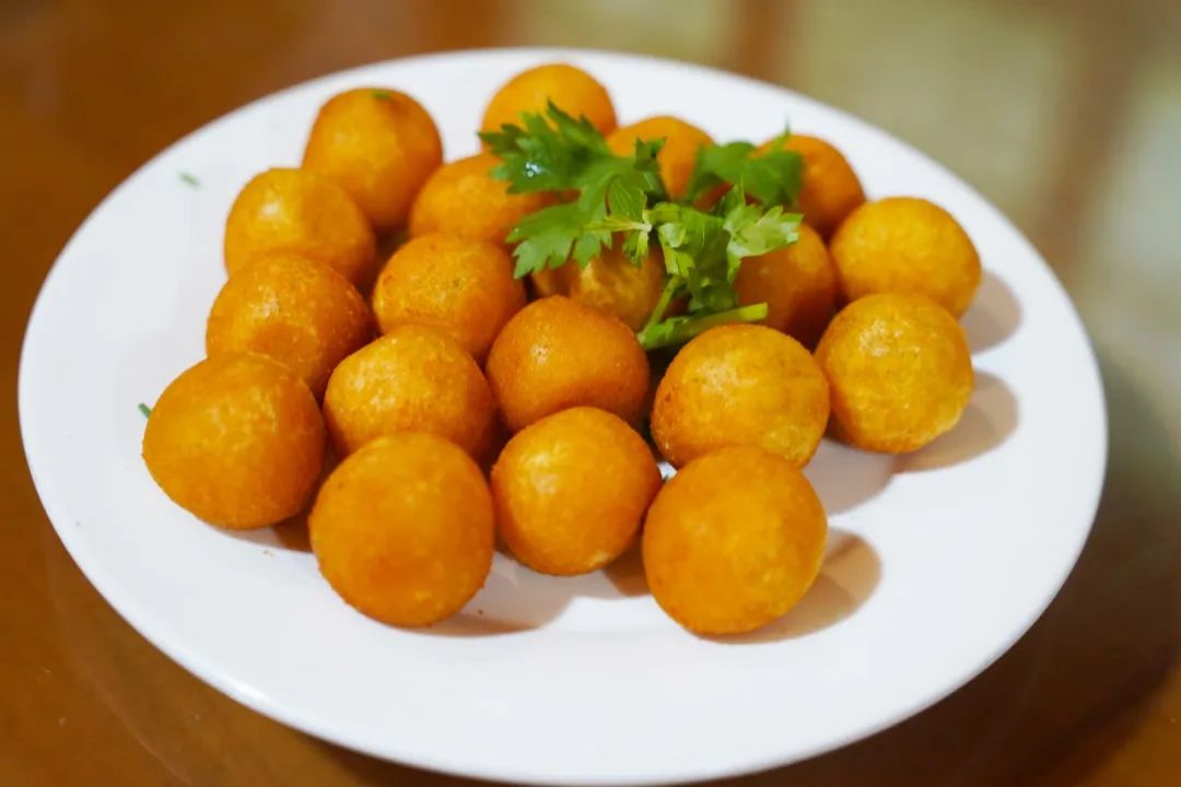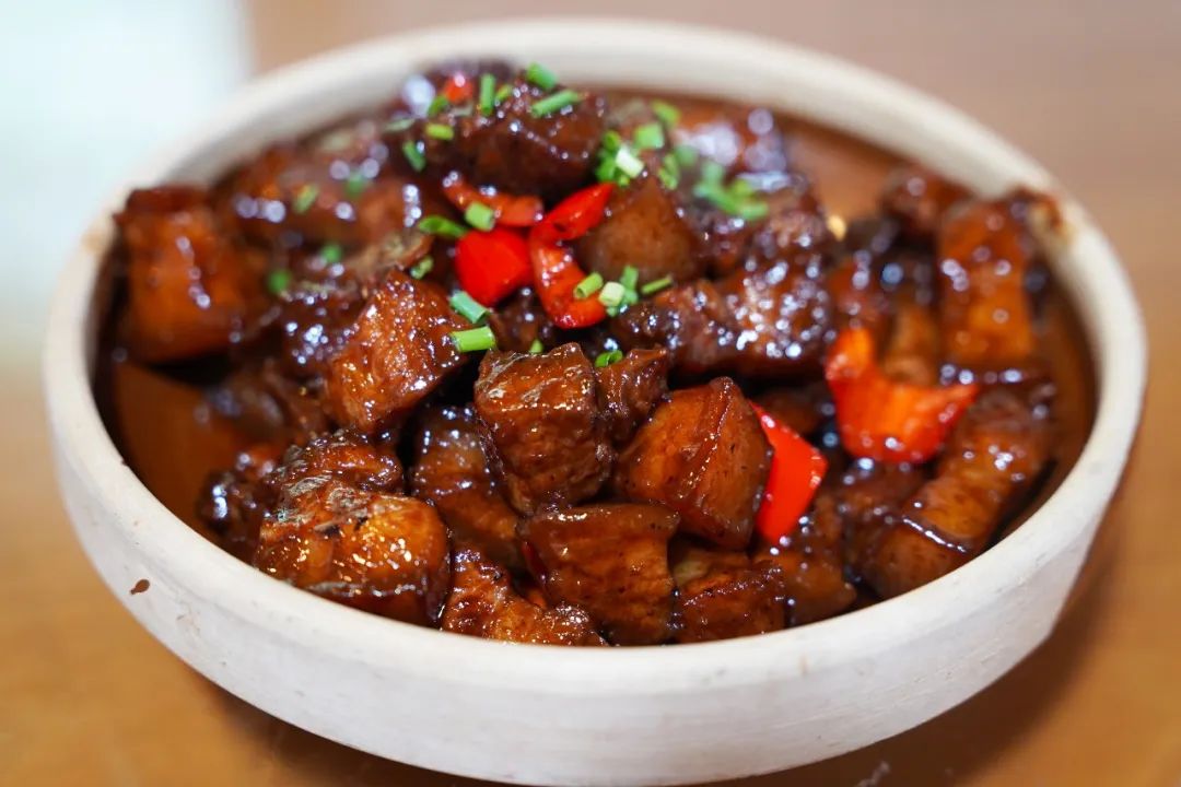 金黃酥脆的炸藕夾中間裹著肉香燉過的紅燒肉口感滑嫩不粘膩