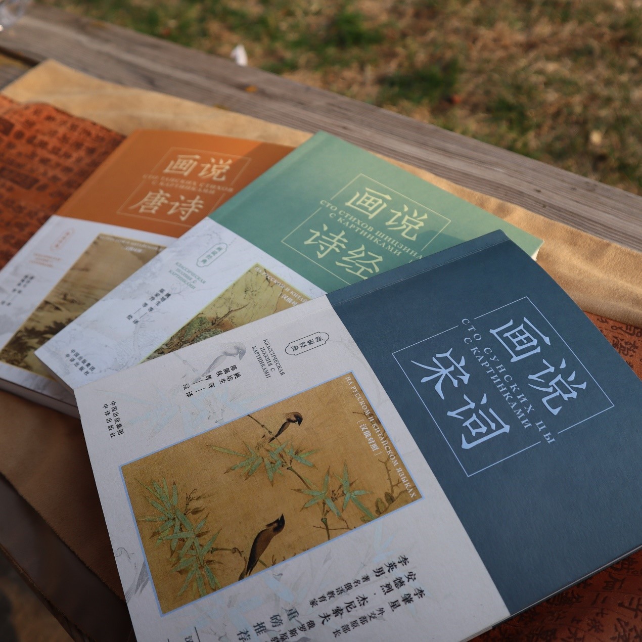 本書由中譯出版社出版,包含《畫說詩經(jīng)》《畫說唐詩》《畫說宋詞》三本分冊,精選《詩經(jīng)》、唐詩、宋詞各百篇,由姚培生發(fā)起并領銜,中、俄、吉譯者、詩人、漢學家攜手翻譯,以漢俄雙語的形式呈現(xiàn)。作者字斟句酌,精益求精,力求用地道的俄語再現(xiàn)中國傳統(tǒng)文化的悠遠情境,幫助俄語讀者感受中國古典文學特有魅力和深遂意境。此外,由陳佩秋等著名畫家為每首詩作畫,一詩一畫,相得益彰。