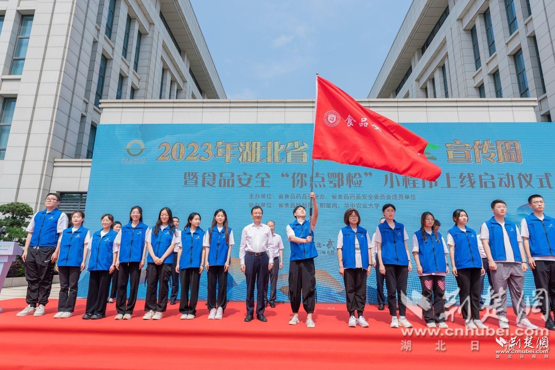 活動現(xiàn)場,省政府副秘書長趙俊發(fā)布2023年湖北省食品安全宣傳周暨食品安全“你點(diǎn)鄂檢”小程序正式上線啟動命令,向華中農(nóng)業(yè)大學(xué)“食品安全湖北行”社會實(shí)踐活動團(tuán)隊(duì)授旗。