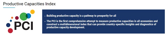 PCI描繪了194個經濟體的生產能力,UNCTAD認為,與GDP等其他傳統(tǒng)標準相比,PCI衡量的不是產出,而是經濟投入和潛力,為國家的發(fā)展提供了更好、更多維的衡量標準。
