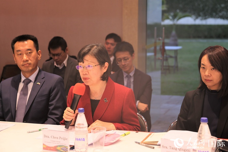 中國(guó)駐圣保羅總領(lǐng)事陳佩潔在對(duì)話會(huì)上致辭。人民網(wǎng)記者 時(shí)元皓攝