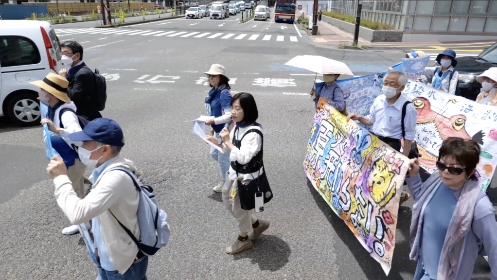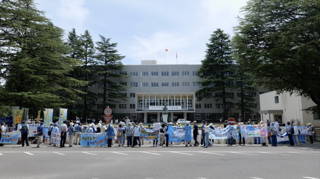 來(lái)自福島當(dāng)?shù)丶叭毡靖鞯氐膹?qiáng)烈反對(duì)核污染水排海的民眾20日聚集在福島,向福島縣政府表達(dá)堅(jiān)決反對(duì)福島核污染水排海的立場(chǎng)。