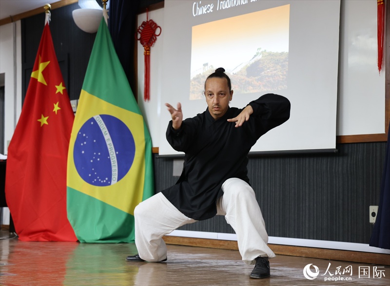 活動(dòng)現(xiàn)場(chǎng),主辦方為來(lái)賓播放了關(guān)于端午節(jié)起源等相關(guān)知識(shí)的文化推廣視頻,詳細(xì)介紹了端午節(jié)背后的人文內(nèi)涵,并根據(jù)視頻內(nèi)容設(shè)置了現(xiàn)場(chǎng)有獎(jiǎng)問(wèn)答活動(dòng)。里約天主教大學(xué)孔子學(xué)院學(xué)生麗娜(Sabrina)和李思城(Vinicius)呈獻(xiàn)的詩(shī)詞朗誦《七律·端午》、《漁家傲》,有板有眼;學(xué)生龍莉茲(Beatriz)演繹的中文歌曲《如愿》,情深意切;教師張德君的一曲《離騷》,令人動(dòng)容;孔院學(xué)生武林道武術(shù)學(xué)校的專業(yè)武術(shù)表演,贏得陣陣喝彩……