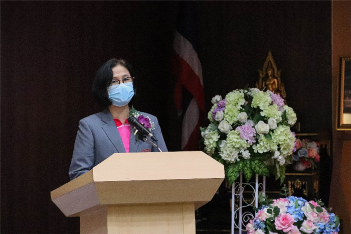 | 泰國基教委中文協(xié)調(diào)小組主任Pattiya Supina致辭。泰國玫瑰園中學(xué)孔子課堂供圖 |