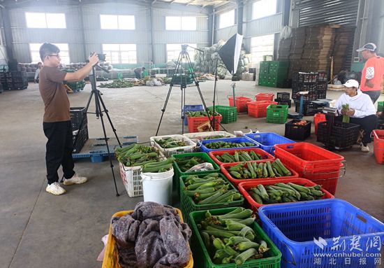 荊楚網(wǎng)(湖北日?qǐng)?bào)網(wǎng))訊(通訊員尹宏偉)6月27日,黃州區(qū)堵城鎮(zhèn)葉路洲余嶺村的湖北福耕生態(tài)農(nóng)業(yè)發(fā)展有限責(zé)任公司蔬菜分揀倉(cāng)庫(kù)里,公司負(fù)責(zé)人吳易翔正對(duì)著鏡頭,賣力地通過(guò)抖音直播帶貨。