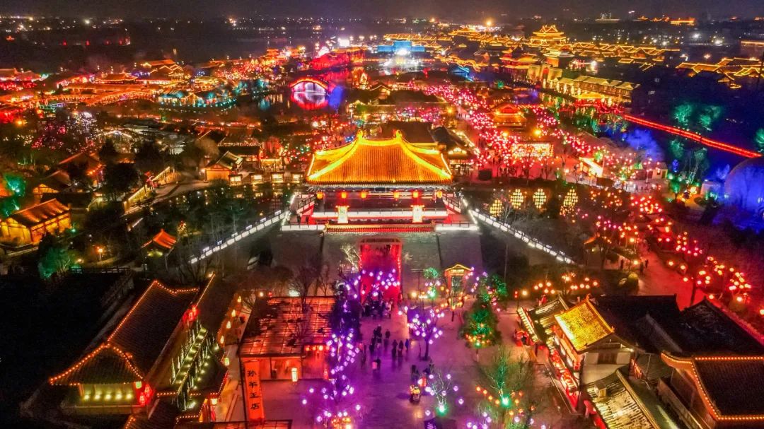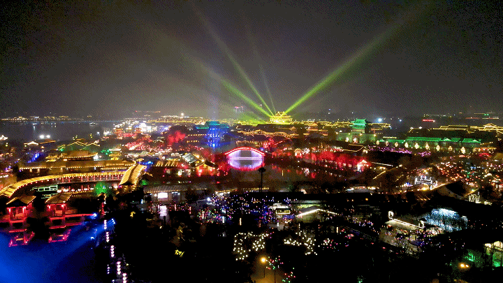 夜晚的清明上河園同樣精彩紛呈,數百萬盞花燈點亮了虹橋和汴河,展現出大宋不夜城的璀璨夜景。此外,大型水上實景演出《大宋·東京夢華》每晚上演,為游客們呈現了盛世畫卷。