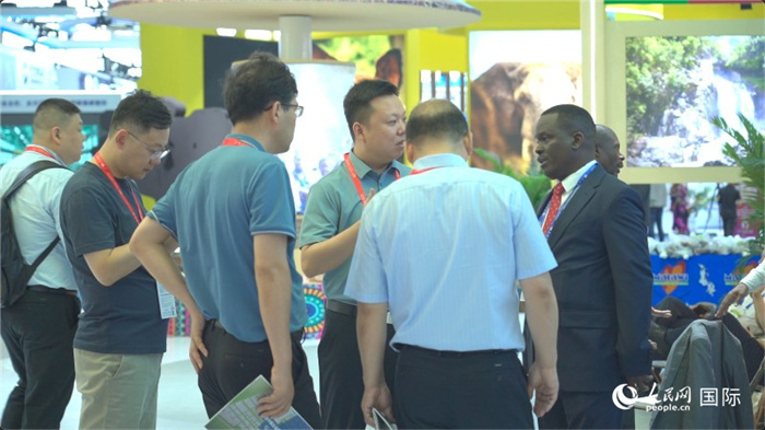 人民網(wǎng)長沙6月30日電 (宋歌、孫鴻宇、袁蒙)6月29日,第三屆中國—非洲經(jīng)貿(mào)博覽會在湖南長沙開幕。本屆博覽會以“共謀發(fā)展,共享未來”為主題,吸引了超過一千家展商參展。會場中人流如織,各國展商匯聚于此,以琳瑯滿目的商品與服務(wù)吸引客戶洽談。