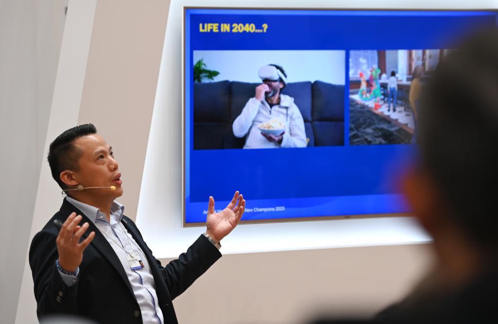 新加坡Group ONE Holdings聯(lián)合創(chuàng)始人兼集團(tuán)總裁鄭華峰在“2040年的生活”對話會上發(fā)言。新華社記者趙子碩 攝