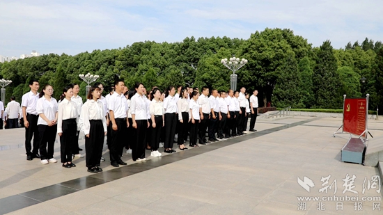 “七一”前夕,在紅安縣黃麻起義和鄂豫皖蘇區(qū)紀(jì)念園革命烈士紀(jì)念碑廣場,紅安縣百名新黨員面向鮮紅的黨旗,舉起右拳許下錚錚誓言。