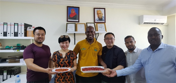 呂翠峰(左二)與坦桑尼亞辣椒供貨商。受訪者供圖