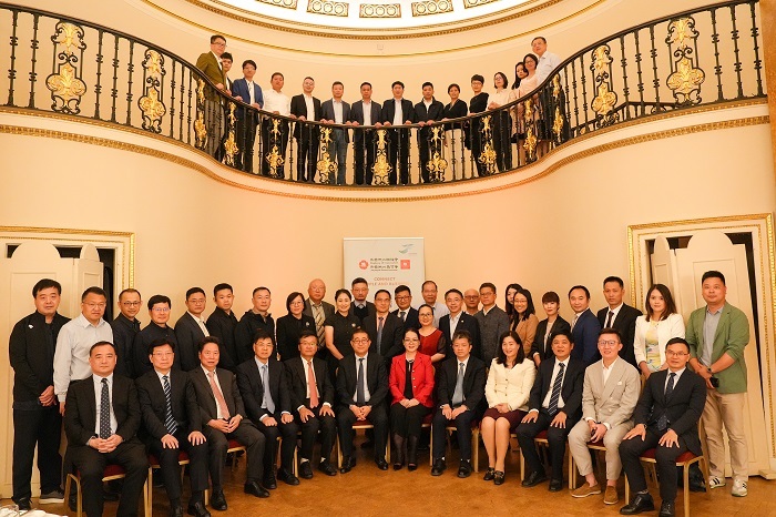 浙江代表團(tuán)與參加座談會(huì)的當(dāng)?shù)貎S領(lǐng)及企業(yè)代表合影留念。英國浙江會(huì)供圖