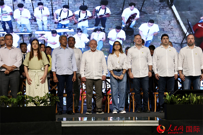| 巴西總統(tǒng)盧拉與中國和巴西企業(yè)代表、巴西政府官員合影。人民網(wǎng)記者 宋亦然攝 |