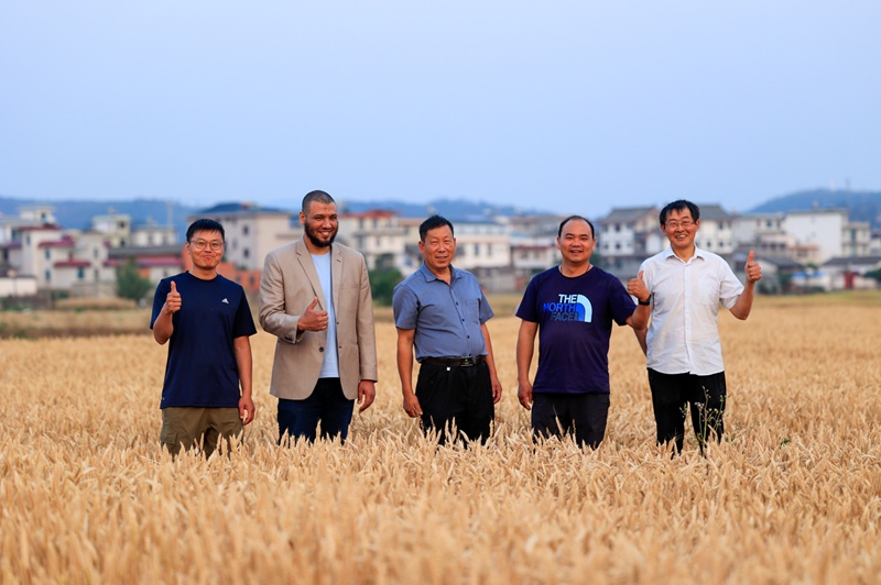 艾哈邁德·埃爾法納(左二)和中國專家在麥田里合影。新華網(wǎng) 趙普凡 攝