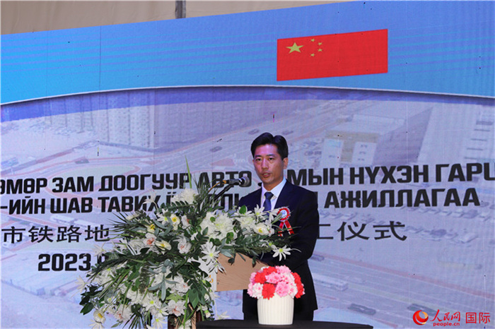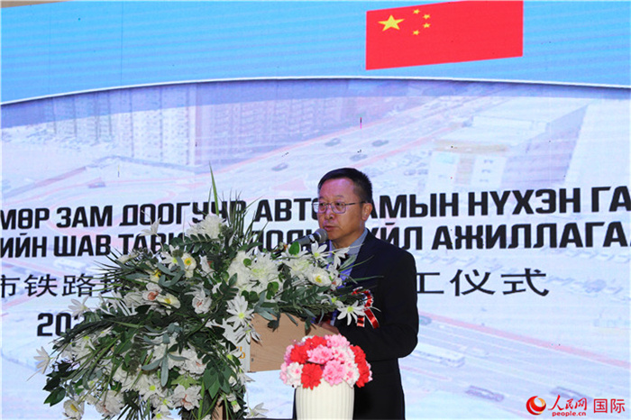 中國(guó)駐蒙古國(guó)大使館經(jīng)濟(jì)商務(wù)參贊宋學(xué)軍致辭。人民網(wǎng)記者 霍文攝
