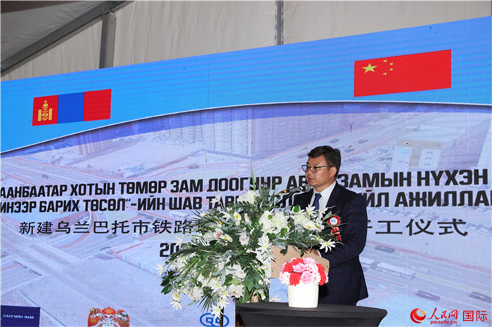 烏蘭巴托市鐵路地下通道工程項(xiàng)目奠基儀式現(xiàn)場(chǎng)。人民網(wǎng)記者 霍文攝