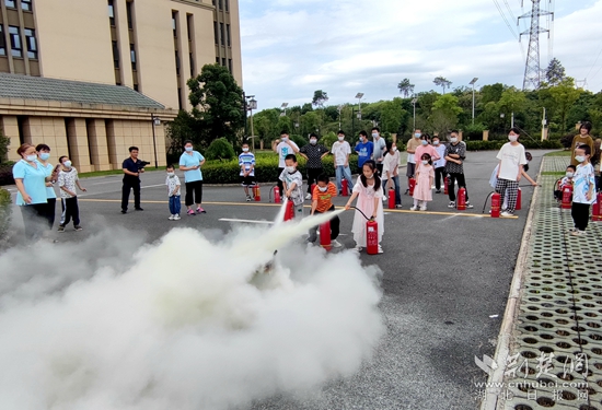 演練時(shí),消防宣傳員組織院內(nèi)兒童在樓內(nèi)的活動(dòng)空間及逃生通道進(jìn)行疏散演練。所有人牢記彎腰、低頭、捂住口鼻三大要點(diǎn),沉著應(yīng)對(duì),迅速?gòu)陌踩ǖ莱冯x到廣場(chǎng)。隨后,在廣場(chǎng)上所有兒童按照消防宣傳員教授的方法:提、拉、握、壓四個(gè)步驟,正確使用滅火器進(jìn)行滅火演練。