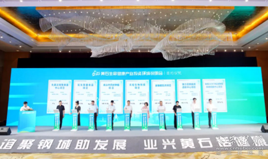 現(xiàn)場共簽約項目23個,總投資139.1億元,并為黃石生命健康產(chǎn)業(yè)協(xié)會授牌。