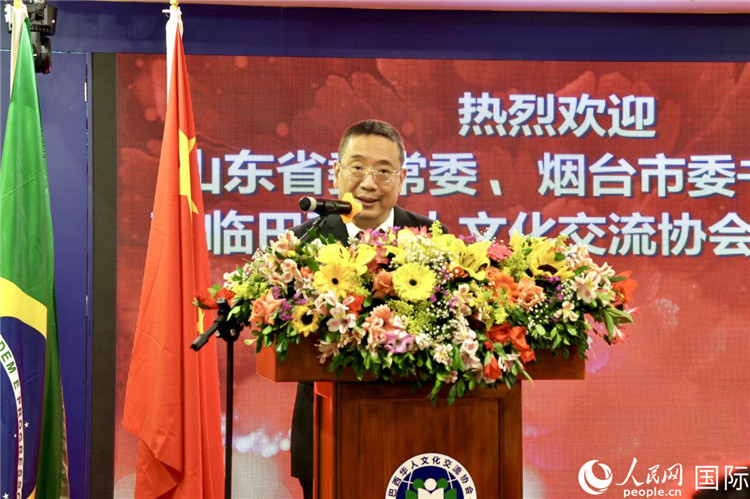 巴西華人文化交流協(xié)會(huì)主席上官建峰致辭。人民網(wǎng)記者 宋亦然 攝