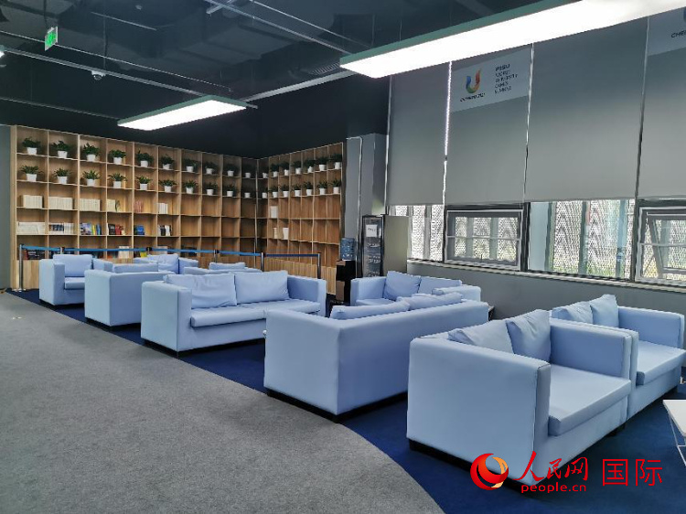 | 成都大運(yùn)會(huì)主媒體中心露天平臺(tái)休閑區(qū)。人民網(wǎng)記者 符園園攝 |