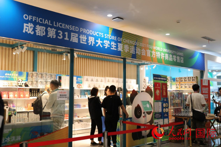 | 成都大運(yùn)會(huì)主媒體中心官方特許商品零售店。人民網(wǎng)記者 符園園攝 |