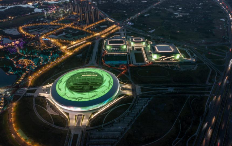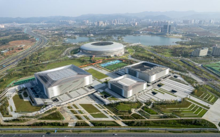 | 圖為俯瞰東安湖體育公園的“一場三館” 成都大運(yùn)會主辦方供圖 |