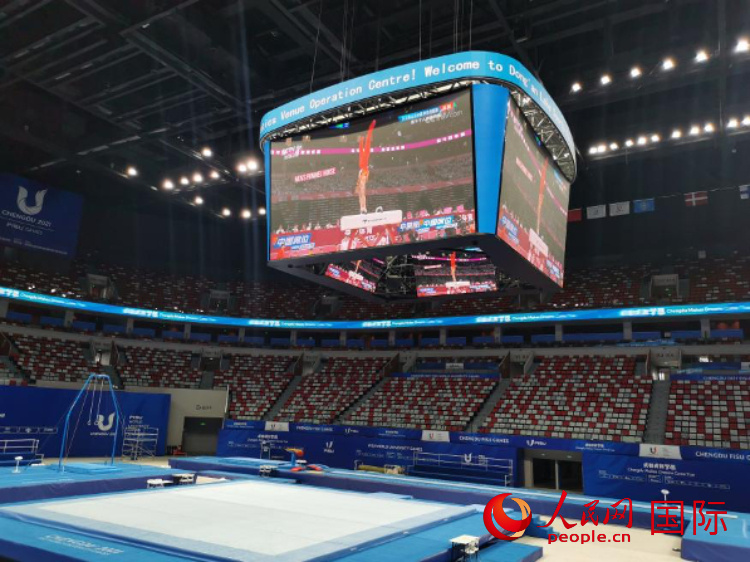 | 圖為東安湖體育公園小球館內(nèi)部。大運(yùn)會期間,小球館將主要作為體操項(xiàng)目的訓(xùn)練場地。人民網(wǎng)記者 符園園攝 |