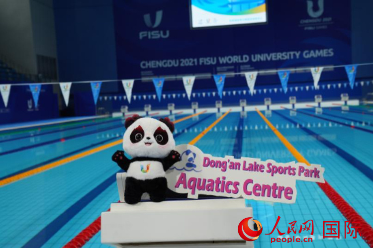 | 圖為擺放在東安湖體育公園游泳跳水館的成都大運(yùn)會吉祥物“蓉寶” 人民網(wǎng) 周琳佳攝 |